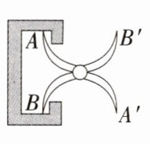 1 新情境 生产生活 如图是工厂里常用的可用于测量零件内槽宽的工具(卡钳),它由两根等长的钢条AA'和BB'在中点处连接而成,只要测出A'B'长就知道AB的长,用到的原理为全等三角形的哪个判定方法 ( )