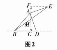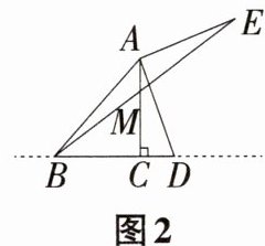 (2)如图2,当点D在线段BC的延长线上时,连接BE交直线AC于点M,试探究BM与EM的数量关系,并说明理由;