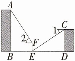 13 新情境 生产生活 如图,小明和小华住在同一个小区不同单元楼,他们想要测量小明家所在单元楼AB的高度,首先他们在两栋单元楼之间选定一点E,然后小华在自己家阳台C处测得E处的俯角为∠1,小明在E处测得眼睛F到AB楼端点A的仰角为∠2,发现∠1与∠2互余,已知EF=1 m,BE=CD=20 m,BD=58 m,则单元楼AB的高为 m。