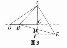 (3)当点D在射线CB上时,连接BE交直线AC于点M,若AC=4CM,请直接写出\frac{S_{\triangle ADB}}{S_{\triangle AEM}}的值。