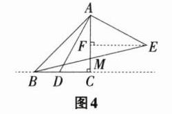 如图4,当点$D$在线段$BC$上时,设$CM = FM = n$,则$BD = CF = 2n$。