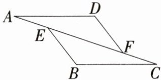 在$\triangle AFD$和$\triangle CEB$中,因为$AD = CB$,$\angle A=\angle C$,$AF = CE$,所以$\triangle AFD\cong\triangle CEB$,所以$\angle B=\angle D$。
