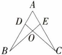 5 (易错题)如图,点D,E分别在线段AB,AC上,CD与BE相交于O点,已知AB=AC,现添加以下的哪个条件仍不能判定△ABE≌△ACD ( )