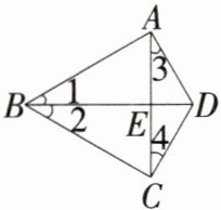 3 [教材P104随堂练习T2 ]如图,AB=CB,∠1=∠2,∠ADC=120°,AC,BD相交于点E,则∠3的度数为 。