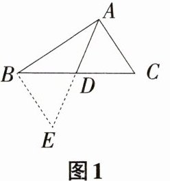 如图1,在△ABC中,若AB = 6,AC = 4,点D为BC边的中点,求BC边上的中线AD的取值范围。