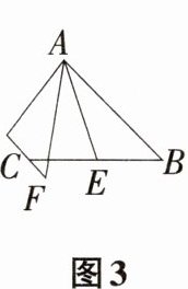 如图3,在四边形ABCD中,AB//CD,AF与DC的延长线交于点F,点E是BC的中点,如果AB = AF + CF,那么∠FAE = ∠BAE吗?请说明理由。