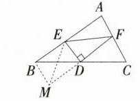 (1)得,△BMD≌△CFD,所以BM = CF。 因为DE⊥DF,所以∠MDE = ∠FDE = 90°,又因为DE = DE,DM = DF,所以△MDE≌△FDE,所以EM = EF。 在△BME中,由三角形的三边关系,得BE + BM>EM, 所以BE + CF>EF。