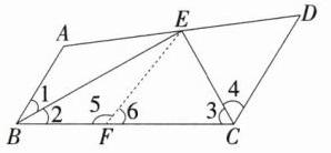 6 如图,AB//CD,BE平分∠ABC,CE平分∠BCD,点E在AD上,试说明:BC = AB + CD。