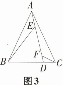 (3)如图3,在△ABC中,AB=AC,AB>BC,点D在边BC上,BD=3CD,点E,F在线段AD上,∠AEB=∠AFC=130°,∠BAC=50°,若△ABC的面积为24,求△ABE与△CDF的面积之和。