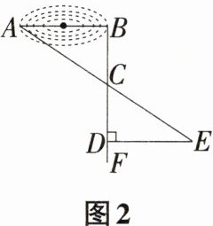 乙:如图2,先过点B作AB的垂线BF,再在BF上取C,D两点,使BC = CD,接着过点D作BD的垂线DE,交AC的延长线于点E,则测出DE的长即为A,B的距离。