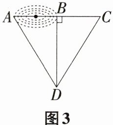 丙:如图3,过点B作BD⊥AB,再由点D观测,在AB的延长线上取一点C,使∠BDC = ∠BDA,这时只要测出BC的长即为A,B的距离。