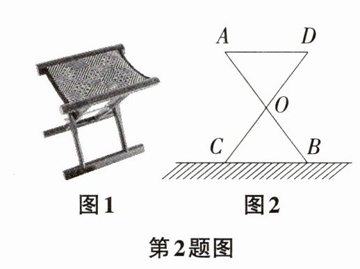 2 传统文化 “马扎”俗名撑板凳,如图1所示。图2是马扎撑开后的侧面示意图(木条等材料宽度忽略不计),其中凳腿AB和CD的长相等,O是它们的中点。为了使马扎坐着舒适,厂家将撑开后的马扎宽度AD设计为32 cm,则由以上信息可推得CB的长度为________。