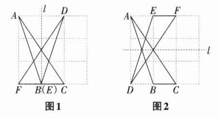 14 新定义 新概念问题 在3×3的正方形网格中,每个小正方形的顶点称为格点,以格点为顶点的三角形称为格点三角形。图中△ABC是一个格点三角形,请在下列网格中各画一个与△ABC成轴对称的格点三角形DEF,并画出其对称轴l。