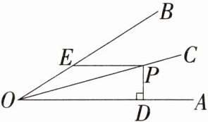 4 新趋势·动点探究题 如图,OC平分∠AOB,点P在OC上,PD⊥OA于点D,PD=1.5 cm,点E是射线OB上的动点,则PE的最小值为________cm。
