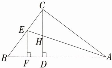 3 如图,∠ACB=90°,CD是Rt△ABC斜边上的高,∠BAC的平分线AE交CD于点H,EF⊥AB于点F。下列结论中不正确的是 ( )