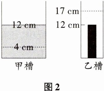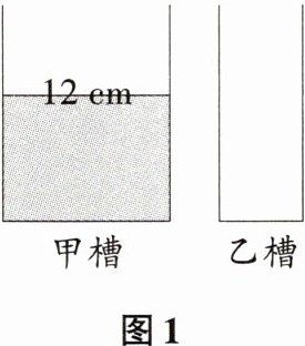 (2)如图2,若乙槽内放入高度为12 cm的圆柱形铁块,当甲槽内水位下降到4 cm时,乙槽内水位刚好到达铁块高度;当甲槽内的水全部注入乙槽时,乙槽的水位高度是17 cm.若乙槽的底面积是48 cm²,求甲槽的底面积和铁块的底面积;