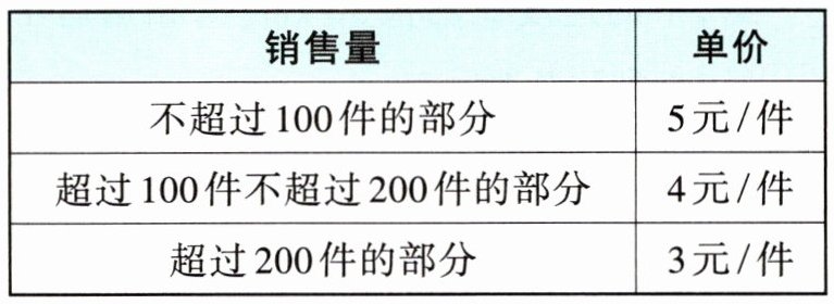 5某批发商对一种商品按销售量分三部分制定销售单价,如下表: