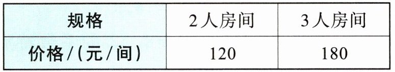 7【新情境·河南地理】河南信阳商城地处鄂豫皖三省交界处,是著名的革命老区.守着大别山革命老区这份巨大的红色资源,商城县大力建设红色旅游经典景区,吸引了大批游客.某旅游团原计划订若干个2人房间,但现在旅游人数增多,有11人没有房间住.若订同样数量的3人房间,则多出5个房间,其余房间正好住满.现有这两种房间的价格如下: