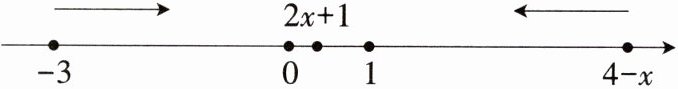 - $\frac{1}{3}$ 解析:由题意知,两只蚂蚁爬行的距离相等,则可列方程2x + 1 - (-3) = 4 - x - 1,解得x = - $\frac{1}{3}$。