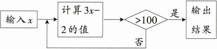 15 解析:当3x - 2 = 127时,解得x = 43;当3x - 2 = 43时,解得x = 15;当3x - 2 = 15时,解得x = $\frac{17}{3}$,不是整数,所以输入的最小正整数为15。