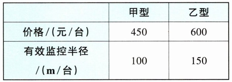 7 为了加强对校内外的安全监控,创建“平安校园”. 某学校计划增加15台监控摄像设备,现有甲、乙两种型号的设备,其中价格、有效监控半径如表所示: