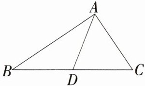∴分两种情况讨论: ①△ABD的周长比△ACD的周长大2,则(AB + BD + AD) - (AC + CD + AD) = AB - AC = 2。可列方程组$\begin{cases}AB + AC = 10\\AB - AC = 2\end{cases}$,解得$\begin{cases}AB = 6\\AC = 4\end{cases}$。 ②△ACD的周长比△ABD的周长大2,则(AC + CD + AD) - (AB + BD + AD) = AC - AB = 2。可列方程组$\begin{cases}AB + AC = 10\\AC - AB = 2\end{cases}$,解得$\begin{cases}AB = 4\\AC = 6\end{cases}$。 综上所述,AC的长度是4或6。