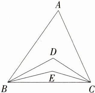 所以∠EBC = $\frac{1}{2}$∠DBC,∠ECB = $\frac{1}{2}$∠DCB,