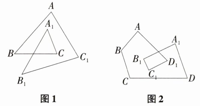 16【新趋势·规律探究题】如图,把图1称为二环三角形,它的内角和∠A+∠B+∠C+∠A₁+∠B₁+∠C₁=_______°;把图2称为二环四边形,它的内角和∠A+∠B+∠C+∠D+∠A₁+∠B₁+∠C₁+∠D₁=_______°;…;依此规律,请你探究二环n边形的内角和是多少度?(用含n的式子表示)