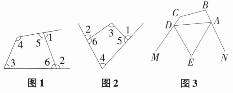 (3)如图3,AE、DE分别是四边形ABCD的外角∠NAD、∠MDA的平分线,∠B + ∠C=240°,求∠E的度数.