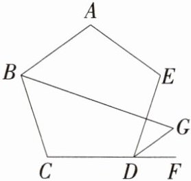 13 如图,正五边形ABCDE,BG平分∠ABC,DG平分正五边形的外角∠EDF,则∠G=_______.