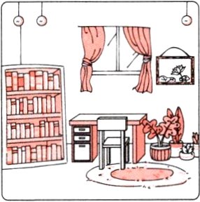 1. Home 2. armchairs 3. TV 4. bed 5. study