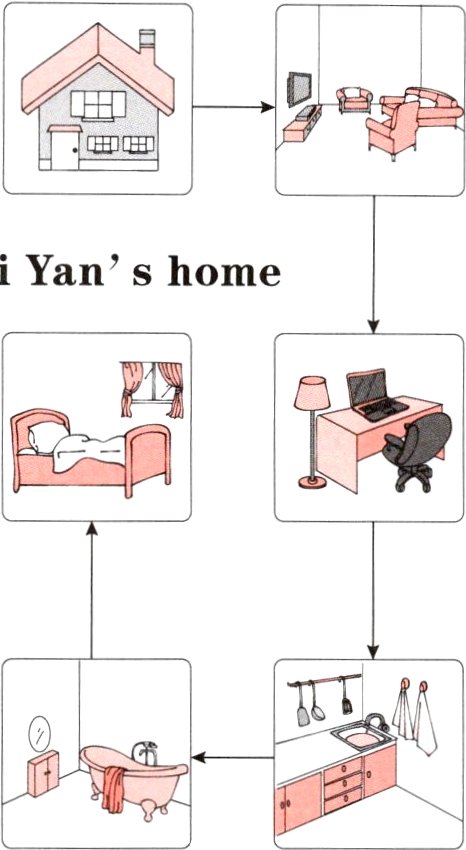 四、请按照Li Yan向Kate介绍新家的顺序,给下列句子排序。