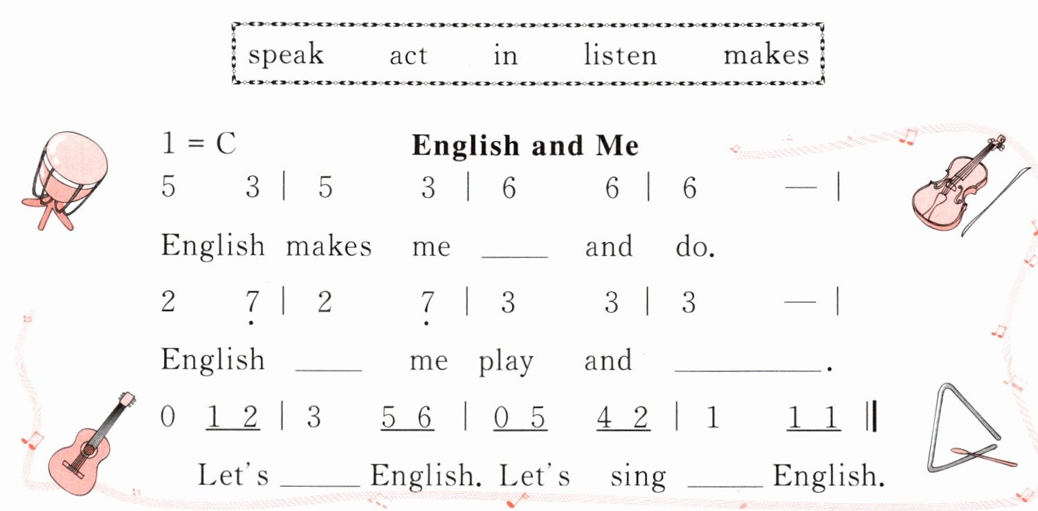 二、选择合适的词,将其填写在横线上,为歌曲填词。(每项仅用一次)