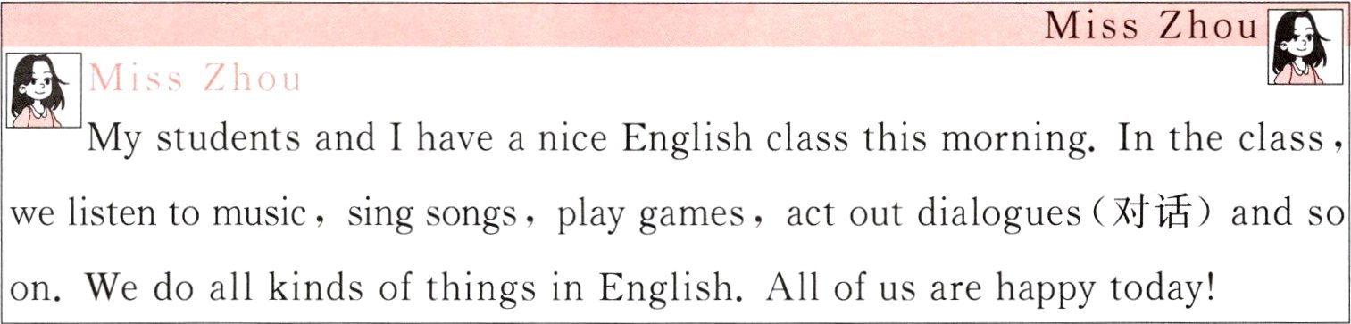 四、【生活实际】阅读 Miss Zhou 的朋友圈,判断句子正(T)误(F)。