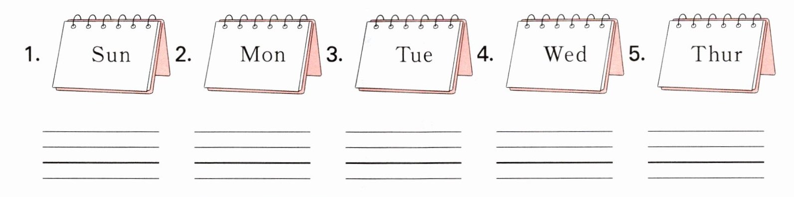1. Sunday 2. Monday 3. Tuesday 4. Wednesday 5. Thursday