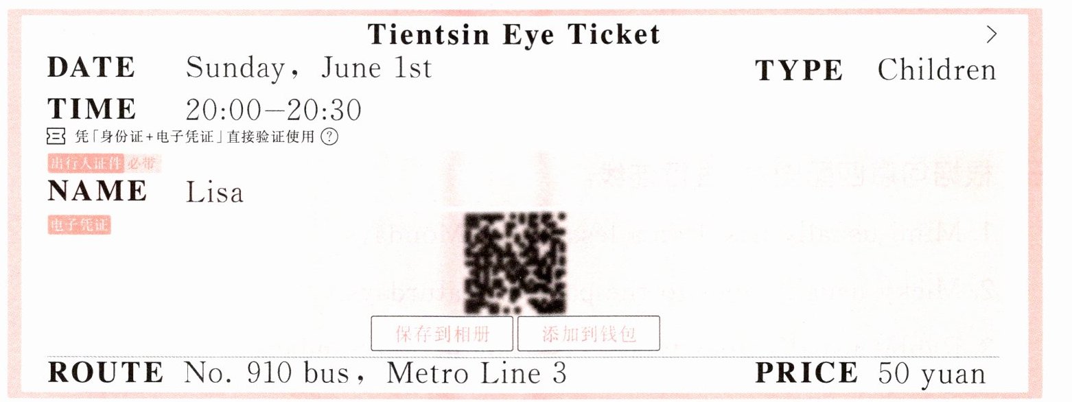 四、【生活实际】阅读“天津之眼”门票信息,选择正确的答案。