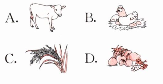 一、根据例子,选择食物的来源,将序号填入对应的括号内。(有一项重复)