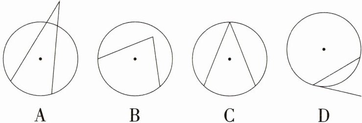C:顶点在圆上,并且两边都与圆还有另一个交点的角叫做圆周角,只有C中的图形符合,故选C。