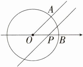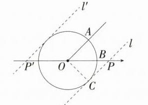 B 如图,当点P在点O右侧,且过点P与OA平行的直线l与⊙O相切时,作OC⊥l,垂足为C,则OC = 1.