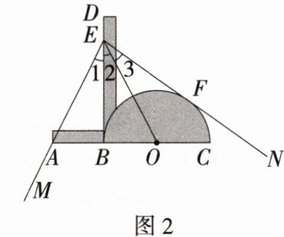 解析 (1)已知:在题图2中,点A,B,O,C在同一直线上,AB = OB = OC,EB⊥AC,垂足为点B,半圆O与EN相切于点F,点A在射线EM上.