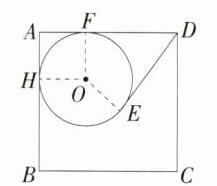 答案 4 解析 如图,设⊙O与正方形ABCD的边AD,AB切于点F,H,连接OH,OF,OE,则∠OFD = ∠OFA = ∠OHA = 90°. 因为四边形ABCD是正方形,所以∠A = 90°,AD = AB = 6,又因为OH = OF,所以四边形AHOF是正方形. 因为⊙O的半径为2,所以OF = AF = OH = 2,所以DF = AD - AF = 6 - 2 = 4. 因为DE与⊙O相切于点E,所以DE = DF = 4.