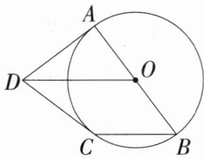 证明:如图,连接$OC$。因为$DA$是$\odot O$的切线,所以$OA\perp AD$。因为$BC// DO$,所以$\angle AOD = \angle OBC$,$\angle COD = \angle OCB$,因为$OB = OC$,所以$\angle OCB = \angle OBC$,所以$\angle AOD = \angle COD$。在$\triangle AOD$和$\triangle COD$中,$\begin{cases}OA = OC\\\angle AOD = \angle COD\\OD = OD\end{cases}$,所以$\triangle AOD\cong\triangle COD$,所以$\angle OCD = \angle OAD = 90^{\circ}$,因为$OC$是$\odot O$的半径,所以$DC$是$\odot O$的切线。