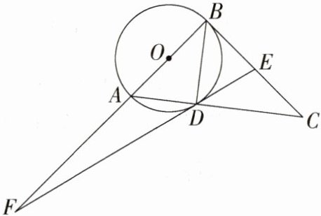 证明:连接$OD$,如图。因为$AB$为直径,所以$\angle ADB = \angle BDC = 90^{\circ}$,因为$E$是$BC$的中点,所以$DE=\frac{1}{2}BC = BE = EC$,所以$\angle EDC = \angle ECD$。又因为$\angle ECD+\angle CBD = 90^{\circ}$,$\angle ABD+\angle CBD = 90^{\circ}$,所以$\angle ECD = \angle ABD$,所以$\angle EDC = \angle ABD$。因为$OB = OD$,所以$\angle ODB = \angle OBD$,所以$\angle EDC = \angle ODB$,所以$\angle ODB+\angle BDE = \angle EDC+\angle BDE = 90^{\circ}$,即$\angle ODE = 90^{\circ}$。因为$OD$为$\odot O$的半径,所以$FE$是圆$O$的切线。