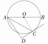 证明:如图,连接$OC$。因为$OA = OC$,所以$\angle OAC = \angle OCA$。因为$AC$平分$\angle DAB$,所以$\angle OAC = \angle DAC$,所以$\angle OCA = \angle DAC$,所以$OC// AD$。又因为$AD\perp CD$,所以$OC\perp CD$,因为$OC$是$\odot O$的半径,所以直线$CD$是$\odot O$的切线。