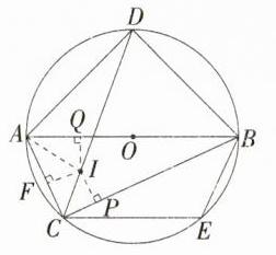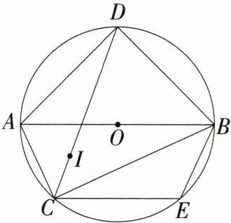 18.(2024山东烟台中考,23,★★☆)如图,AB是☉O的直径,△ABC内接于☉O,点I为△ABC的内心,连接CI并延长交☉O于点D.E是$\overset{\frown}{BC}$上任意一点,连接AD,BD,BE,CE.