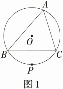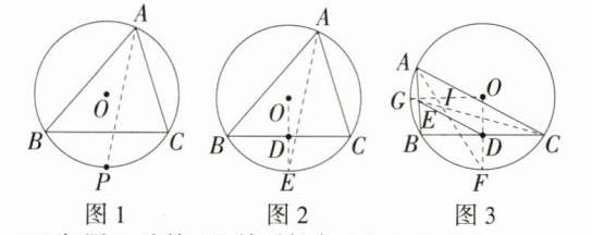 (1)如图1,△ABC是☉O的内接三角形,点P是☉O上一点,且$\overset{\frown}{BP}$ = $\overset{\frown}{CP}$.画出△ABC中∠BAC的平分线.