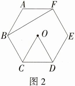 10.跨化学·苯环 (2024安徽合肥蜀山二模,5,★☆☆)苯(分子式为C₆H₆)的环状结构是由德国化学家凯库勒提出的.随着研究的不断深入,发现苯分子中的6个碳原子组成了一个完美的正六边形(如图1),图2是其平面示意图,点O为正六边形ABCDEF的中心,则∠CBF - ∠COD的度数为(M9224012)( )