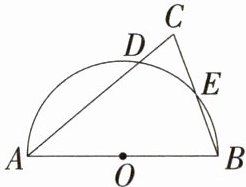 14.(2024四川广安中考,9,★★☆)如图,在等腰三角形ABC中,AB = AC = 10,∠C = 70°,以AB为直径作半圆,与AC,BC分别相交于点D,E,则$\overset{\frown}{DE}$的长度为(M9224013) ( )
