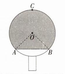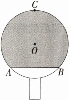 10.跨体育与健康·乒乓球拍 和差法求面积 我国的国球是乒乓球,世界上乒乓球拍的拍形大体上可以归为三类:圆形、方形和异形,绝大多数的横板与中国式的直板都是圆形的.如图所示的是李明同学自制的一块乒乓球拍,⊙O的半径为8 cm,$\overset{\frown}{AB}$的长为4π cm,弓形ACB(阴影部分)粘贴胶皮,则胶皮的面积为________cm².