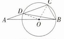 12.(2024安徽合肥瑶海三模,7,★★☆)如图,△ABC的顶点B,C落在⊙O上,AB经过圆心O,AC与⊙O相交于点D,已知∠A = 20°,∠CBD = 50°,BC = 2,则$\overset{\frown}{CD}$的长为 ( )